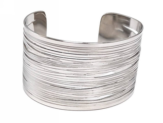 Κομψό Ασημένιο Βραχιόλι Μανσέτα με Οριζόντιες Ρίγες και Γυαλιστερό Φινίρισμα | 2412-222A