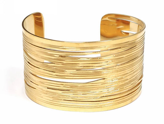 Κομψό Χρυσό Γυναικείο Βραχιόλι με Διακοσμητικό Μοτίβο Λεπτών Λωρίδων | 2412-222X