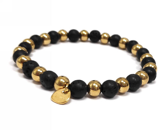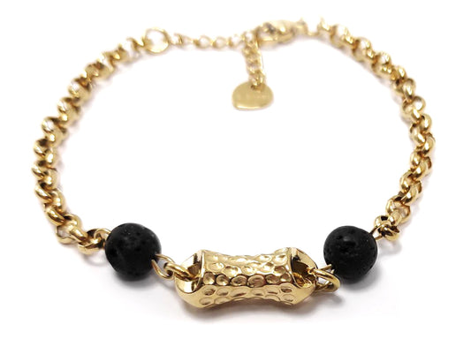 Γυναικείο Βραχιόλι με Μαύρες Πορώδεις και Χρυσές Λείες Χάντρες | 2412-303X