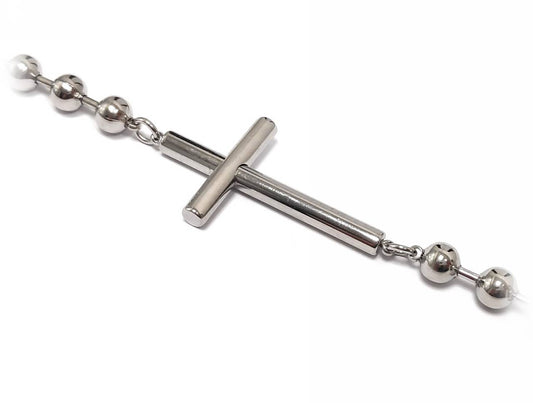 Κομψό Ατσάλινο Γυναικείο Βραχιόλι με Στρογγυλές Χάντρες και Σταυρό | 2412-327A