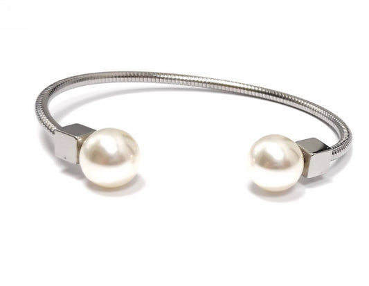 Κομψό Βραχιόλι με Πέρλες και Μεταλλικά Τετράγωνα Τελειώματα | 2412-243A