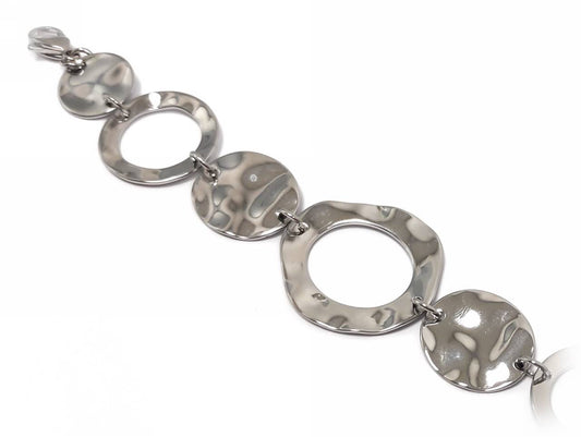 Μοντέρνο Γυναικείο Βραχιόλι με Κυκλικά και Οβάλ Στοιχεία σε Ασημένιο Τόνο | 2412-328A