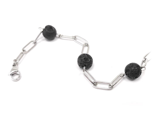 Βραχιόλι με Μαύρες Χάντρες Λάβας Φυσικής Προέλευσης Ελαστικό | 2411-006