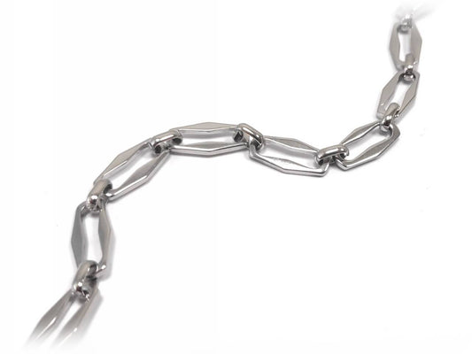 Ασημί Βραχιόλι με Ορθογώνιους Κρίκους και Ρυθμιζόμενο Κούμπωμα | 2222-074A