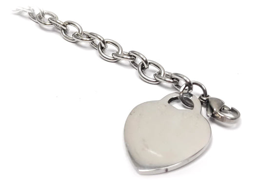 Ασημί Βραχιόλι με Οβάλ Κρίκους και Κρεμαστή Καρδιά | 2012-127A