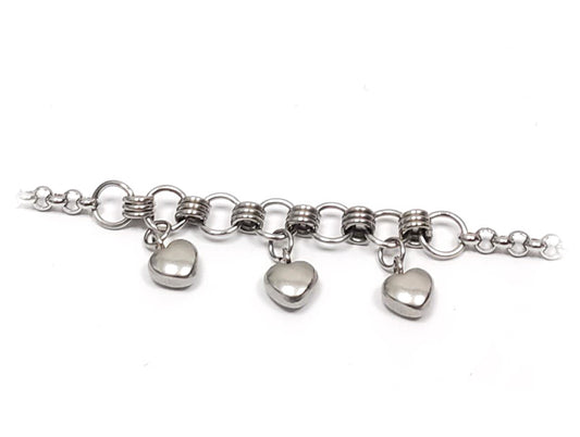 Γυναικείο Βραχιόλι από Ατσάλι με Αλυσίδα και Κρεμαστές Καρδιές | 2012-134A
