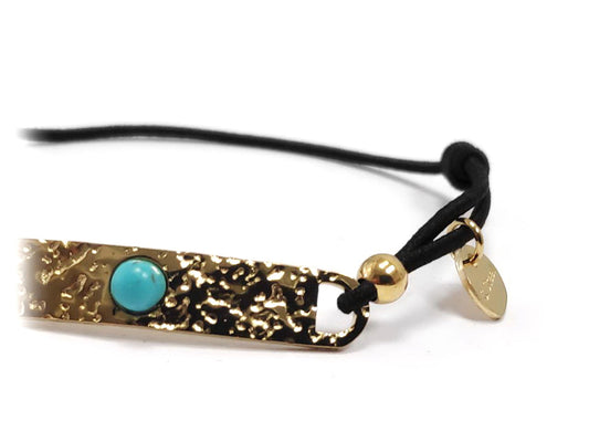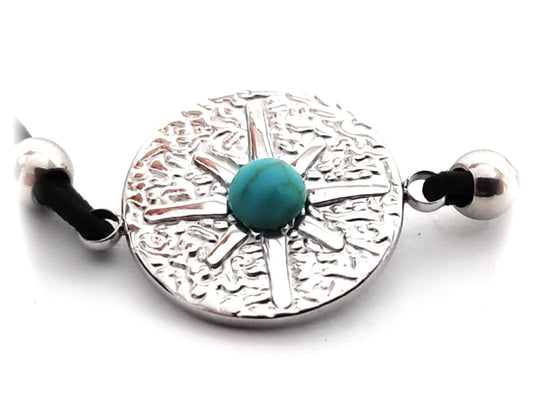 Βραχιόλι με Μαύρο Κορδόνι, Ασημένιο Δίσκο & Τιρκουάζ Πέτρα | 2112-112A