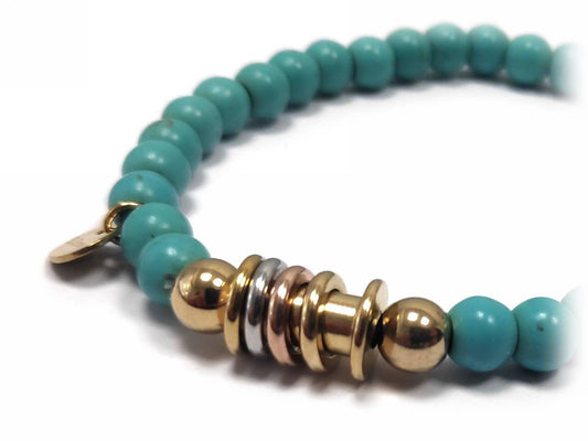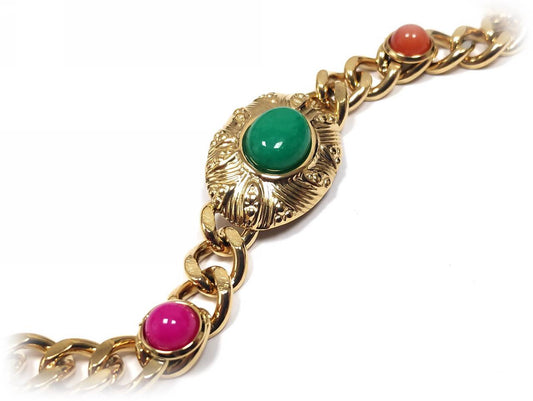 Χρυσόχρωμο Βραχιόλι με Πράσινη, Κόκκινη και Ροζ Πέτρα σε Πλέξη Άγκυρας | 2332-005X
