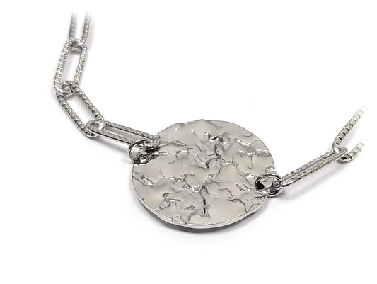 Ασημί Βραχιόλι με Ορθογώνιους Κρίκους και Ανάγλυφο Δίσκο | 2012-233A