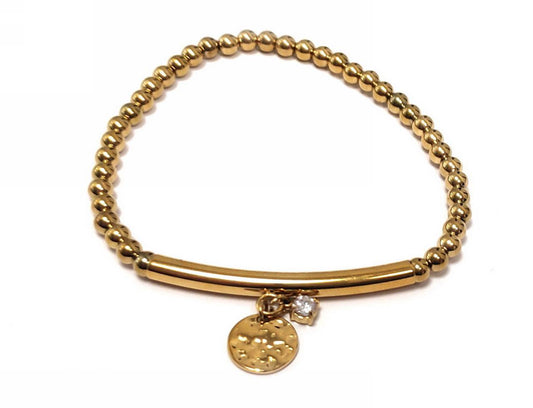 Χρυσαφένιο Γυναικείο Βραχιόλι με Μπίλιες και Διακοσμητικά Στοιχεία Νομίσματος & Διάφανης Πέτρας | 2412-301X