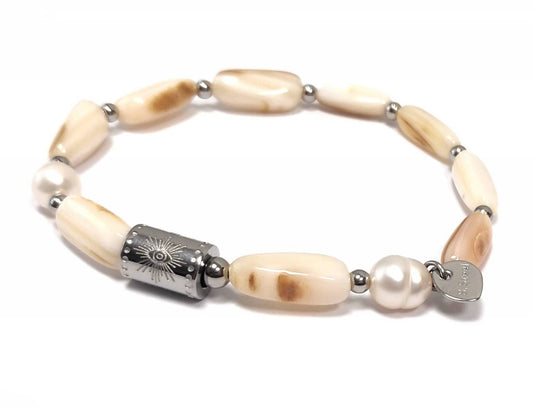 Γυναικείο Βραχιόλι με Οβάλ Χάντρες Εμπνευσμένες από Κέρατο & Μεταλλικές Λεπτομέρειες | 2412-306A