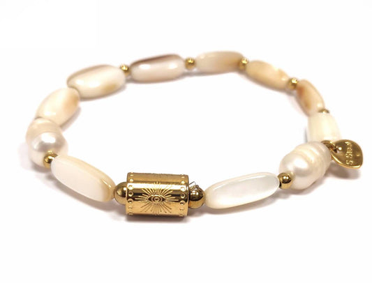 Γυναικείο Βραχιόλι με Φυσικές Χάντρες και Μεταλλικές Λεπτομέρειες | 2412-305X