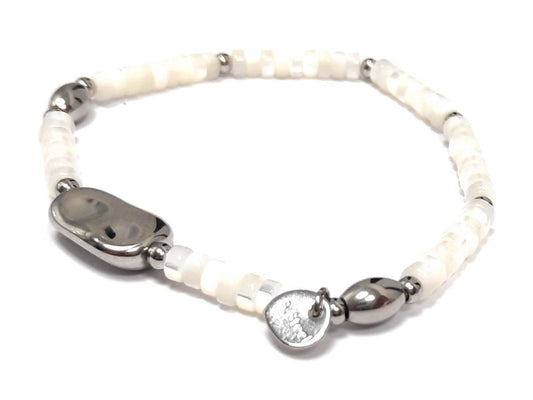 Κομψό Γυναικείο Βραχιόλι με Λευκές Τετράγωνες Πέτρες και Ασημένιες Χάντρες - Σχέδιο "S" | 2412-307A