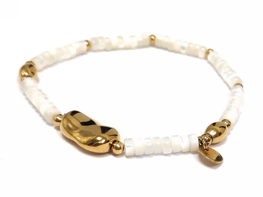 Γυναικείο Βραχιόλι με Λευκές Ίριδες Χάντρες και Χρυσά Διαχωριστικά | 2412-306X