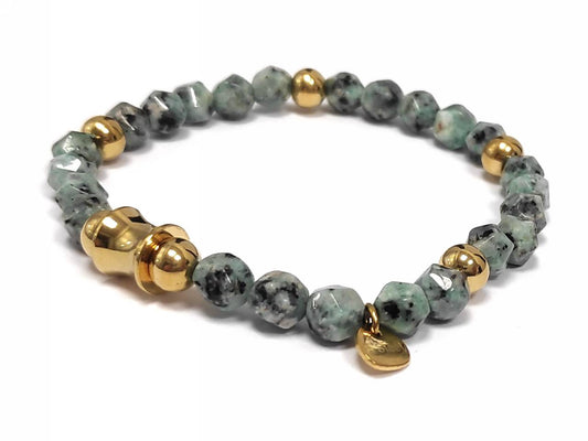 Γυναικείο Βραχιόλι με Πέτρινες Χάντρες σε Πράσινες/Γκρι Αποχρώσεις και Χρυσά Διαχωριστικά | 2412-311X