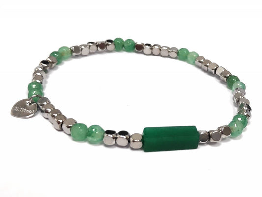 Γυναικείο Βραχιόλι με Πράσινες Χάντρες και Μεταλλικές Λεπτομέρειες από Ανοξείδωτο Ατσάλι | 2412-311A