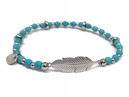 Γυναικείο Βραχιόλι με Γαλάζιες Χάντρες και Μεταλλική Διακοσμητική Πτέρυγα | 2412-313A