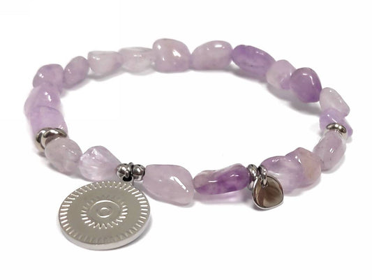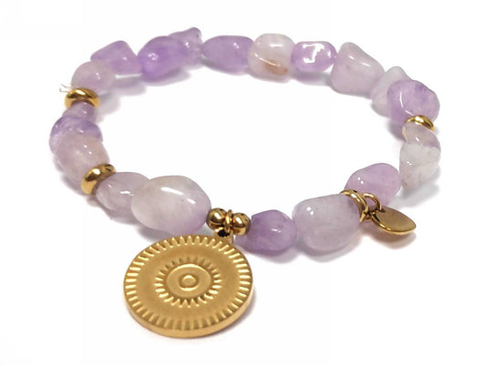 Γυναικείο Βραχιόλι με Ανοιχτό Μοβ Χάντρες Πολύτιμης Πέτρας και Χρυσά Μεταλλικά Διακοσμητικά | 2412-318X