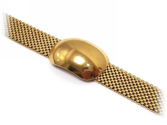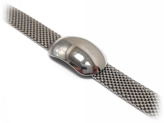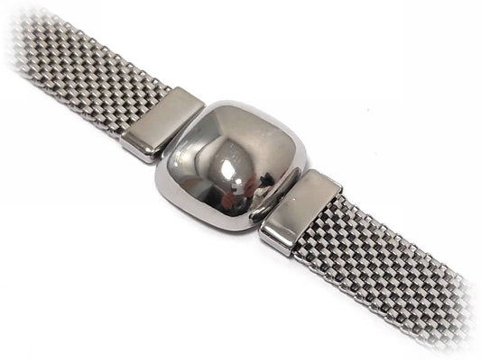 Μοντέρνο Γυναικείο Βραχιόλι με Οβάλ Γυαλιστερή Πλάκα και Διχτυωτή Μεταλλική Λουρίδα - Ρυθμιζόμενο Κλείσιμο | 2412-321A