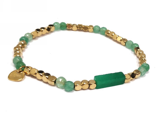 Γυναικείο Βραχιόλι με Πράσινες Χάντρες και Μεταλλικά Στοιχεία σε Σχήμα Κύβου | 2412-312A