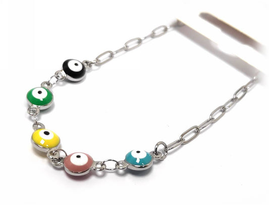 Κολιέ Αλυσίδα από Ατσάλι με Πολύχρωμα Ματάκια | 2212-556A