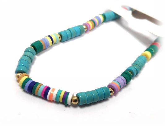 Κολιέ με Πολύχρωμες Κυλινδρικές Χάντρες και Χρυσές Λεπτομέρειες | 2212-558X
