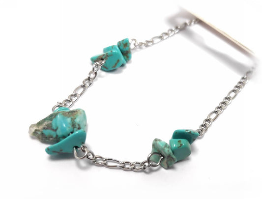Βραχιόλι Ποδιού από Ατσάλι με Τιρκουάζ Πέτρες | 2212-560A