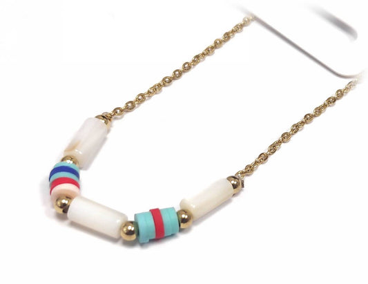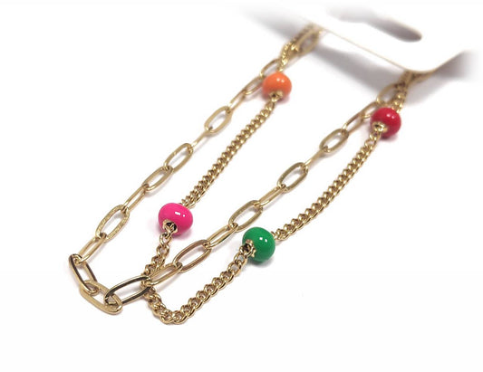 Πολύχρωμη Γυναικεία Αλυσίδα Ποδιού με Χάντρες και Λεπτή Μεταλλική Αλυσίδα | 2412-609A