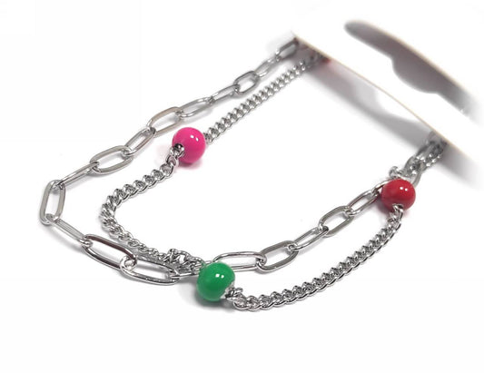 Πολύχρωμη Γυναικεία Αλυσίδα Ποδιού με Ασημένια Αλυσίδα και Χάντρες | 2412-610A