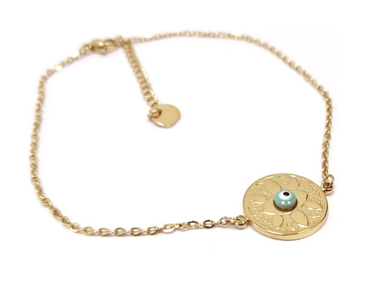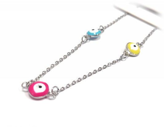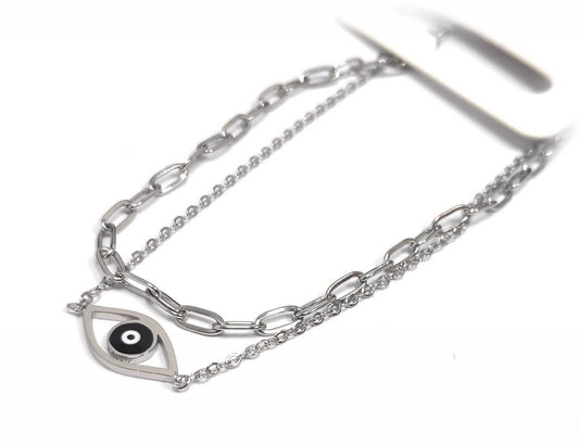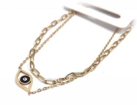 Γυναικείο Βραχιόλι Ποδιού από Ατσάλι με Διπλή Αλυσίδα & Μάτι | 2212-564A