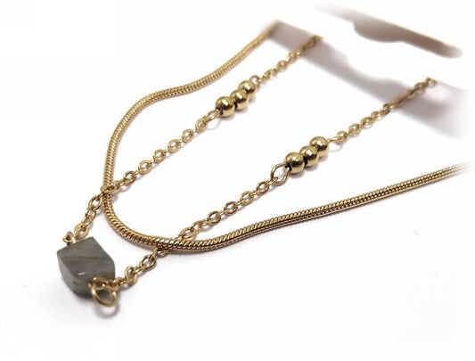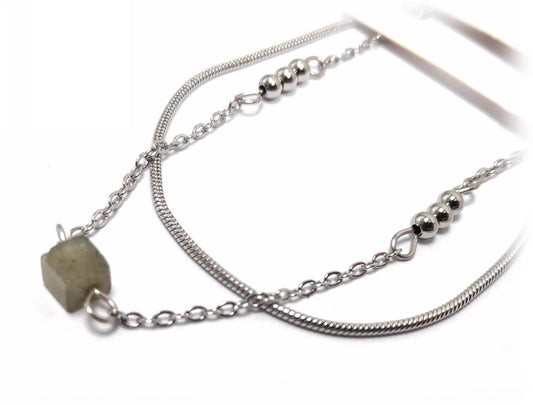 Κολιέ Διπλή Αλυσίδα από Ατσάλι με Διακοσμητικό Κρίκο και Χάντρες | 2212-553A
