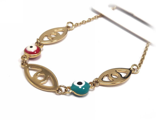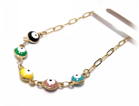 Χρυσή Αλυσίδα Ποδιού με Οβάλ Συνδέσμους και Χάντρες Ματιού σε Ποικιλία Χρωμάτων | 2212-556X