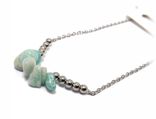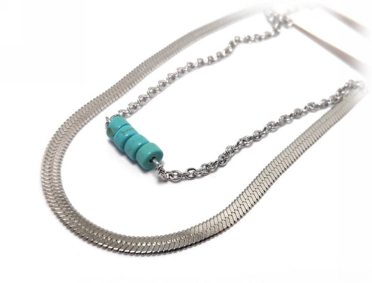 Κολιέ από Ανοξείδωτο Ατσάλι με Τιρκουάζ Χάντρες και Μεταλλικά Σφαιρίδια | 2212-561A