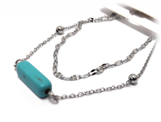 Βραχιόλι Ποδιού από Ατσάλι με Τιρκουάζ Πέτρες | 2212-560A