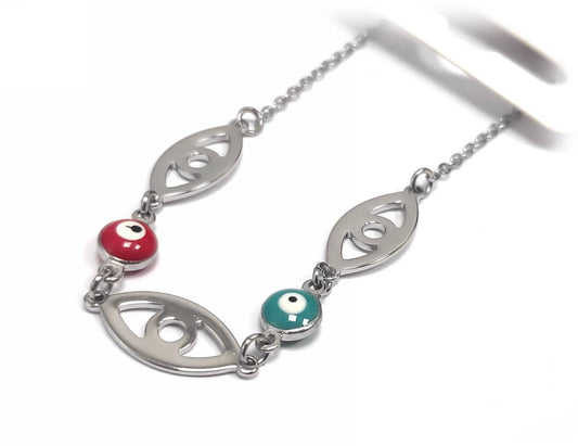 Κολιέ Αλυσίδα από Ατσάλι με Πολύχρωμα Ματάκια | 2212-556A