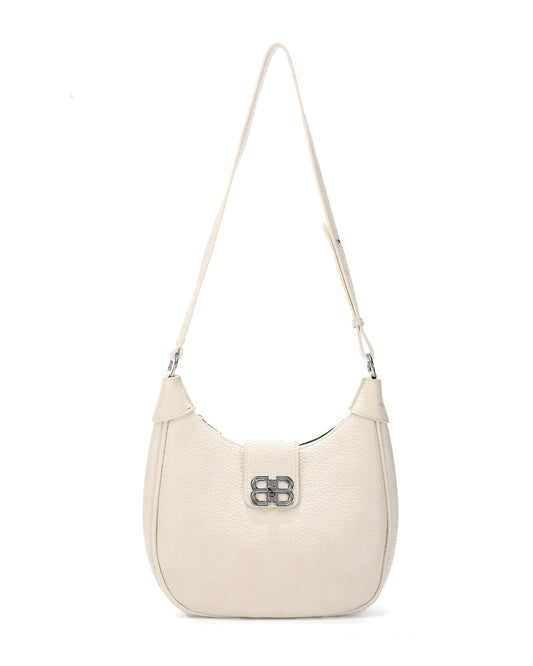 Τσάντα ώμου χιαστί μεσαίου μεγέθους από τεχνόδερμα με διακοσμητικό έμβλημα | SQ-10510