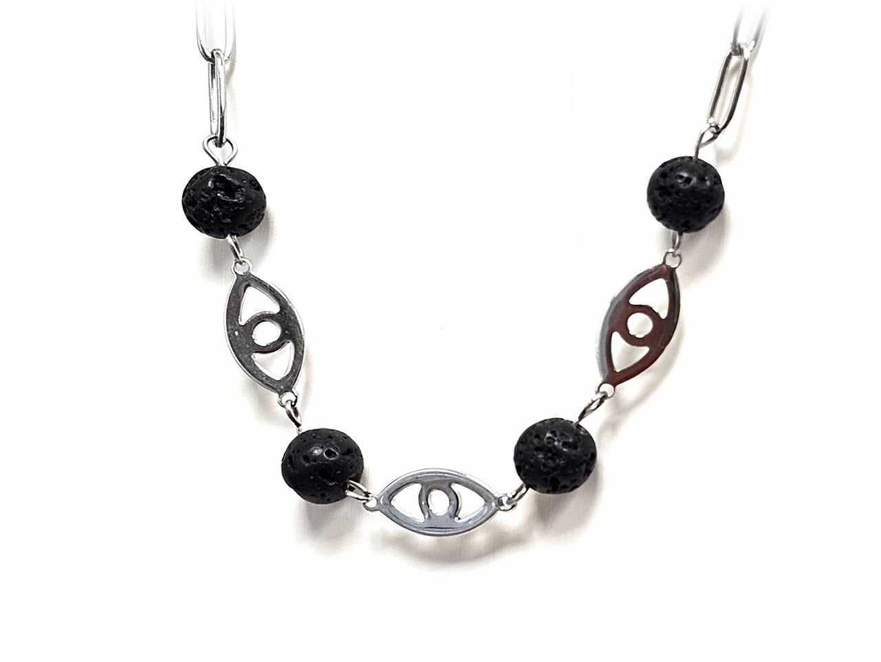 Κολιέ Πέτρα 316L, αλυσίδα με μάτι και λάβα σε χρώμα Ασημί
