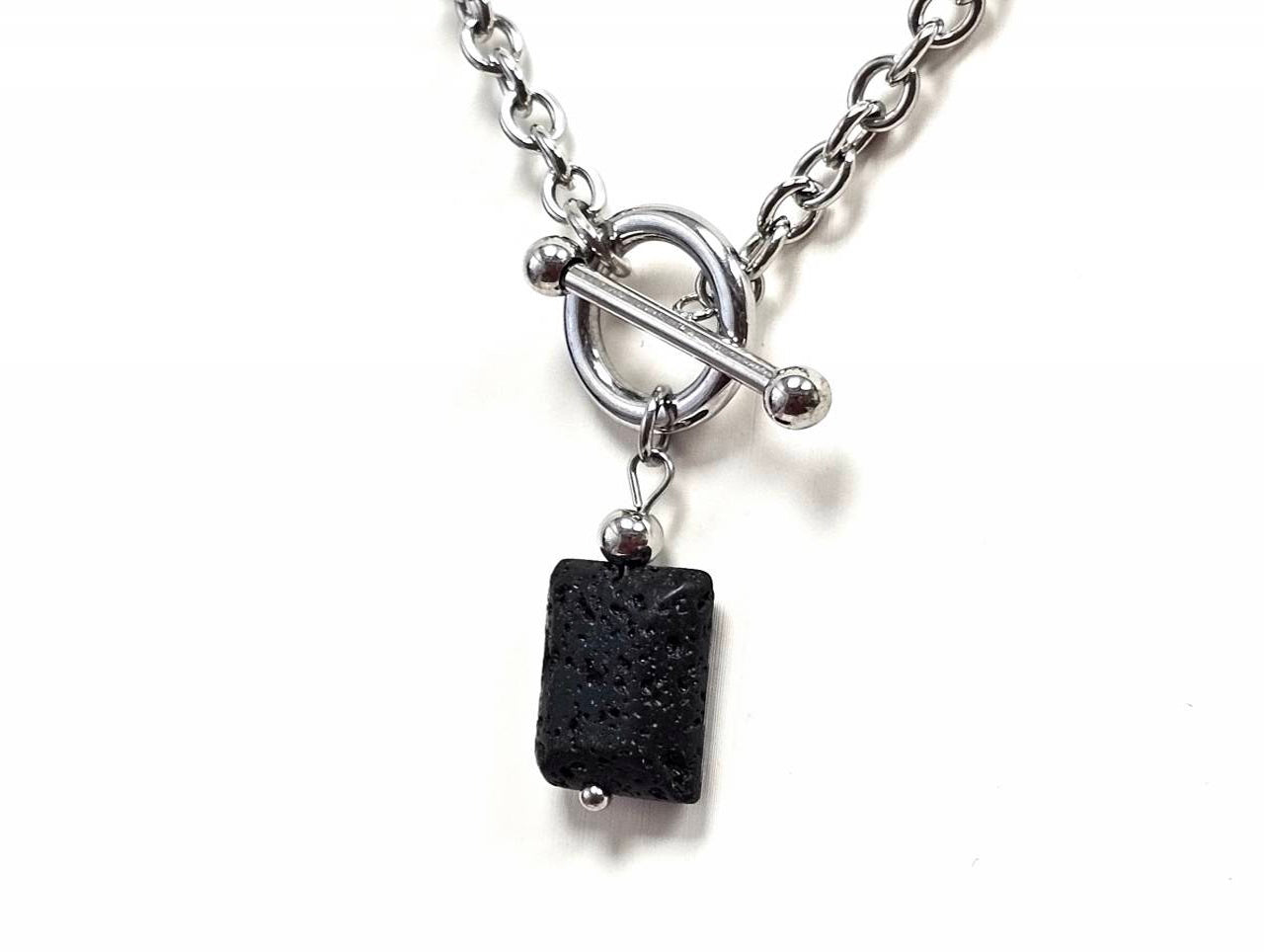 Κολιέ Πέτρα 316L, αλυσίδα με λάβα σε χρώμα Ασημί