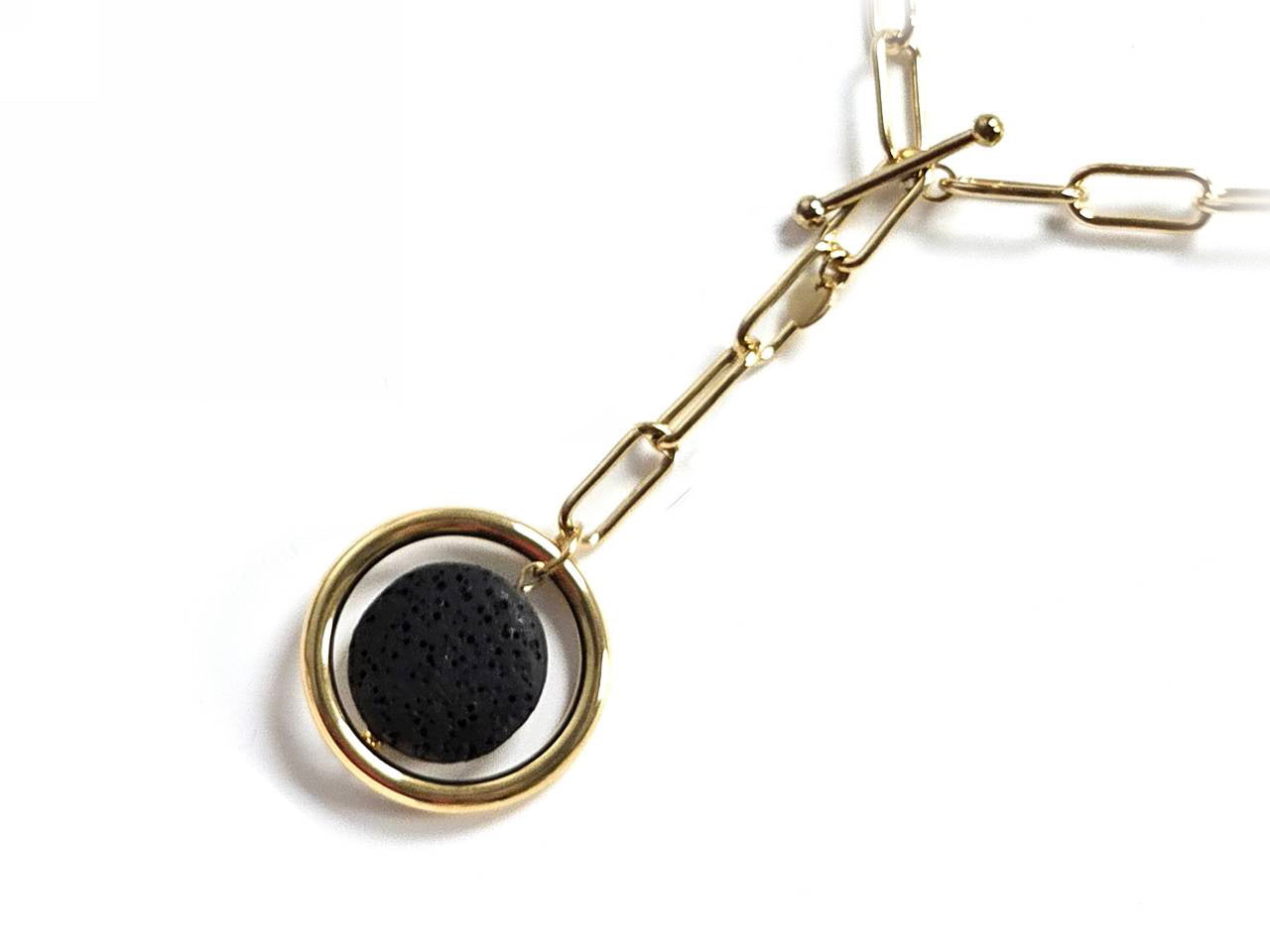 Κολιέ Πέτρα 316L, αλυσίδα με λάβα σε χρώμα Χρυσαφί