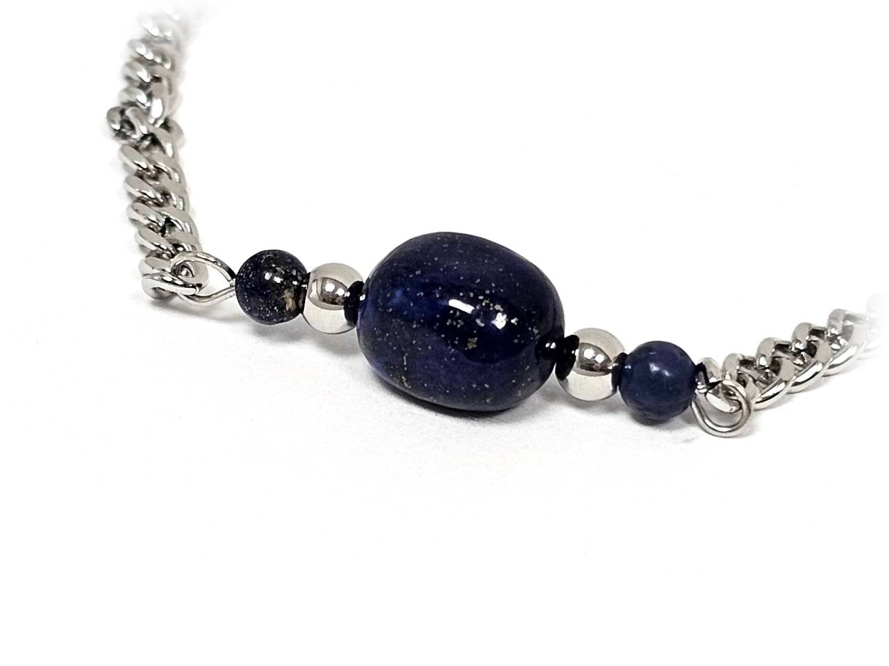 Βραχιόλι Πέτρα 316L, αλυσίδα με Lapis σε χρώμα Ασημί