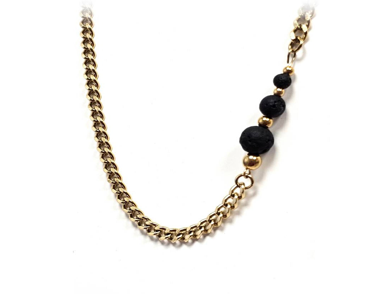 Κολιέ Πέτρα 316L, αλυσίδα με λάβα σε χρώμα Χρυσαφί