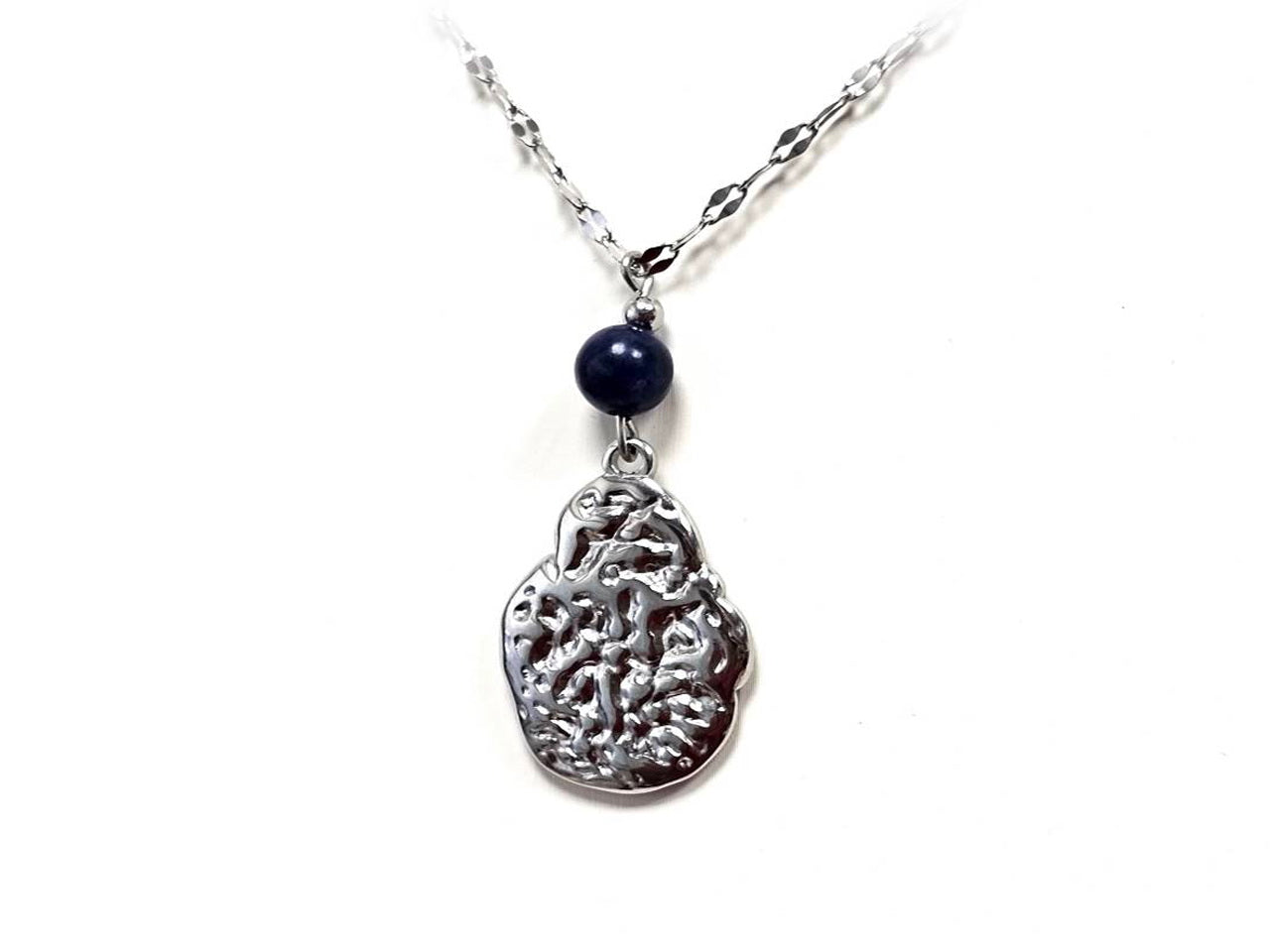 Κολιέ Πέτρα 316L, αλυσίδα με Lapis σε χρώμα Ασημί