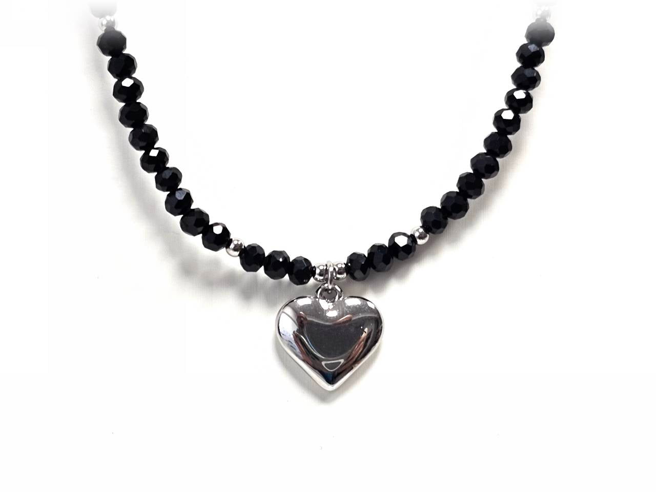 Κολιέ Ατσάλι 316L, καρδιά με κρυσταλλάκι σε χρώμα Ασημί