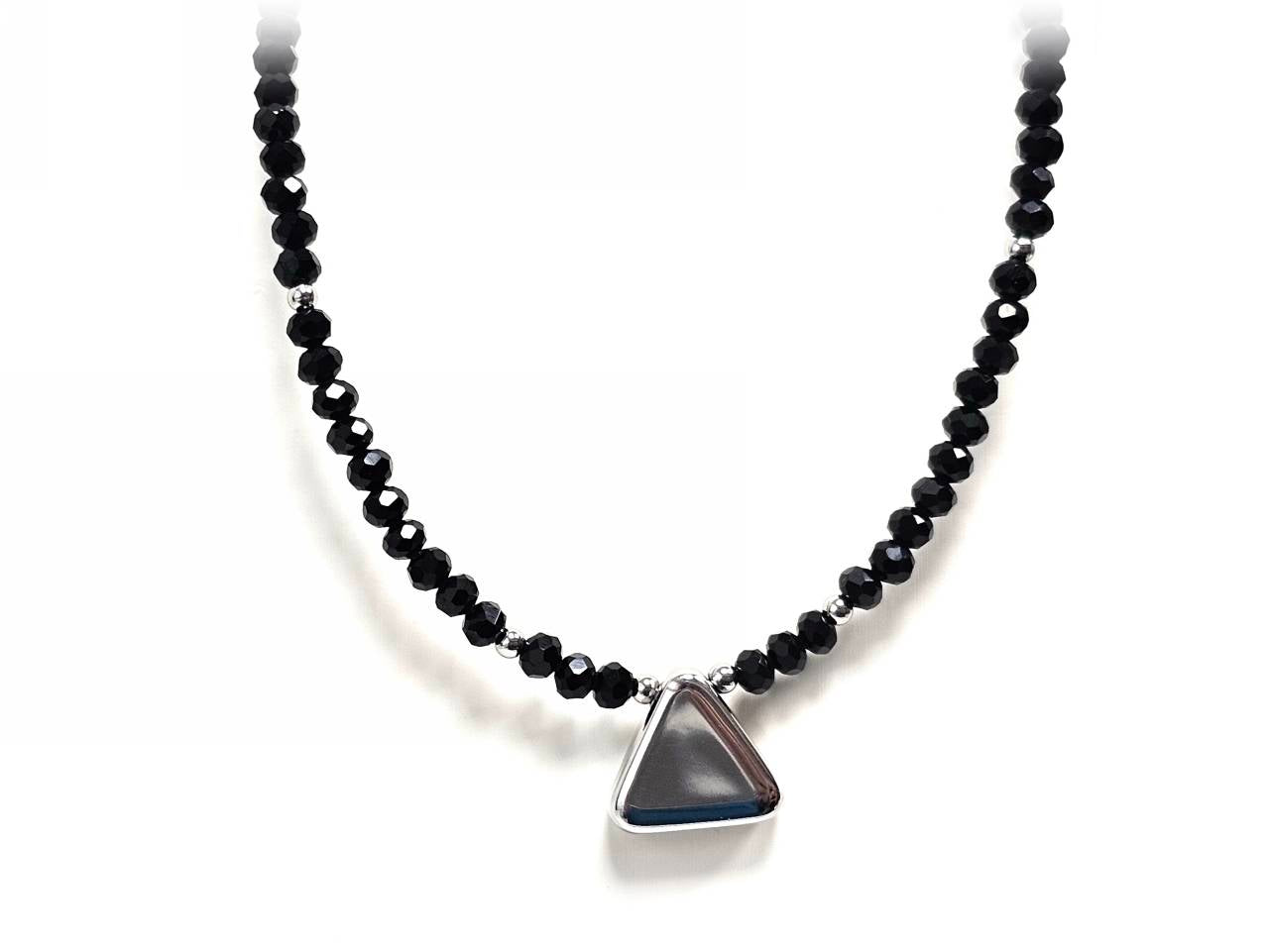 Κολιέ Ατσάλι 316L, τρίγωνο με κρυσταλλάκι σε χρώμα Ασημί
