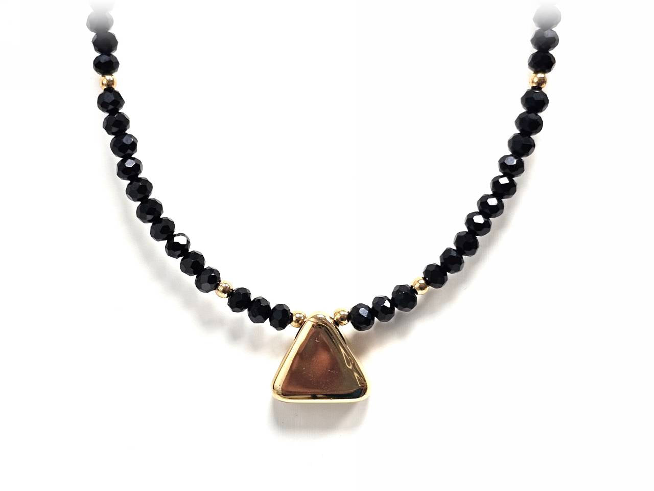 Κολιέ Ατσάλι 316L, τρίγωνο με κρυσταλλάκι σε χρώμα Χρυσαφί