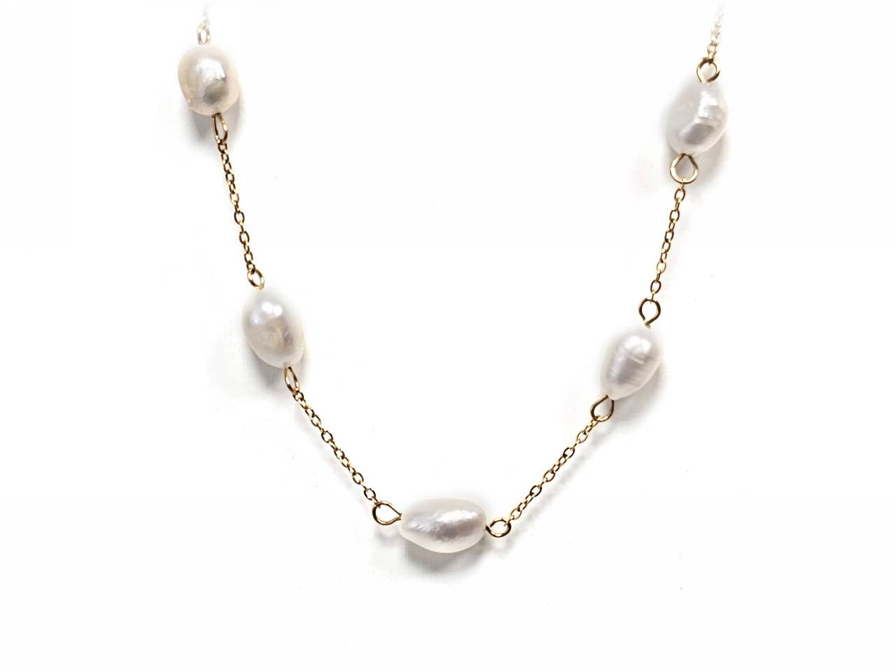 Κολιέ Ατσάλι 316L, αλυσίδα με μαργαριτάρι σε χρώμα Χρυσαφί