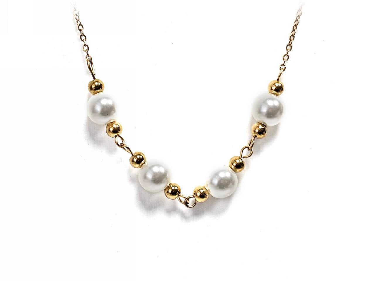 Κολιέ Ατσάλι 316L, αλυσίδα με πέρλα σε χρώμα Χρυσαφί