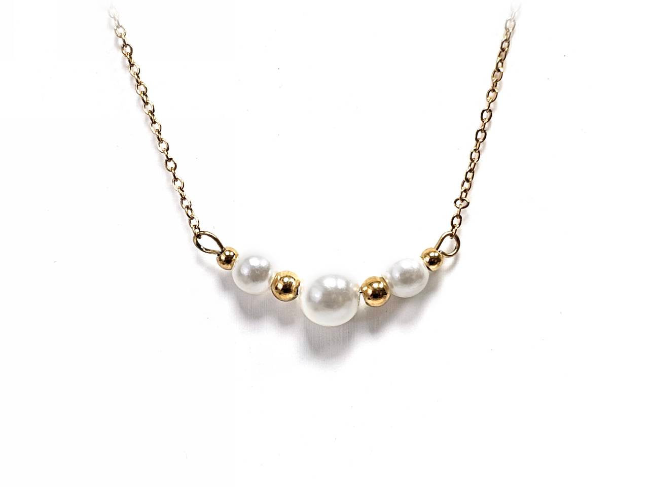 Κολιέ Ατσάλι 316L, αλυσίδα με πέρλα σε χρώμα Χρυσαφί