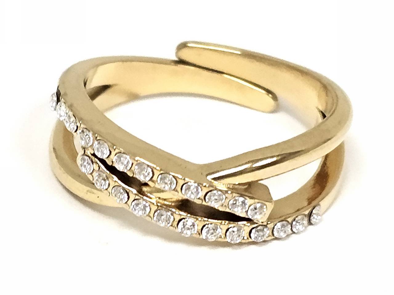 Δαχτυλίδι Ατσάλι 316L, με στρας σε χρώμα Χρυσαφί