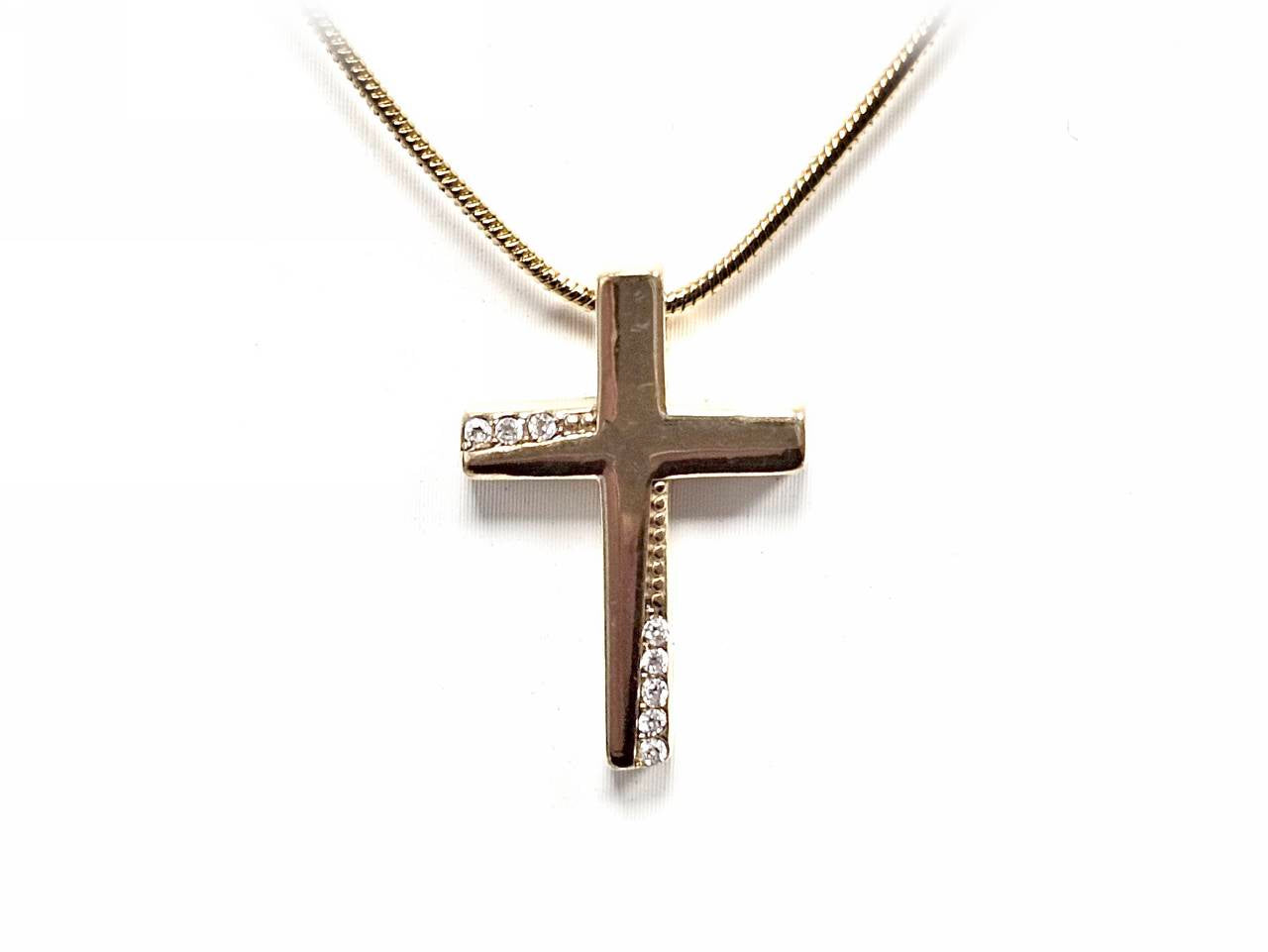Κολιέ Ατσάλι 316L, αλυσίδα με σταυρό και στρας σε χρώμα Χρυσαφί